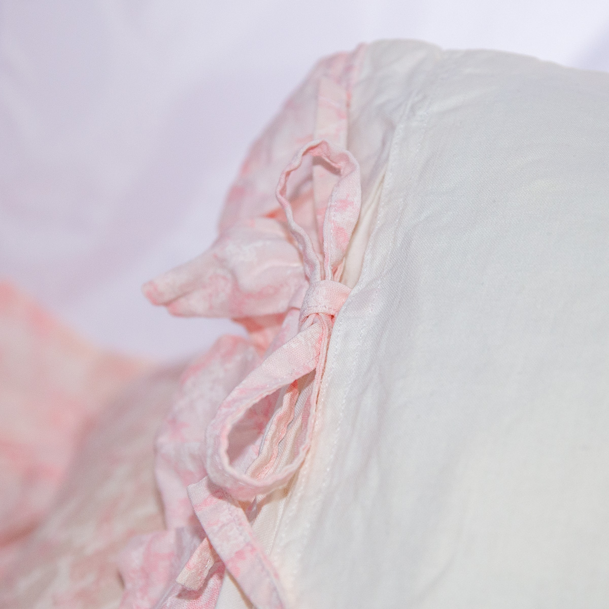 Unikalna pościel wykonana na zamówienie klienta. Pościel uszyta jest z naturalnych materiałów i ozdobiona wg życzeń. Według indywidualnego życzenia klienta, może zawierać, takie zdobienia, jak falbanki, ręcznie haftowane monogramy, elementy patchworku oraz ozdobne zapięcia typu kokardki. Możliwe jest wykonanie pościeli w rozmiarze dobranym do indywidualnych potrzeb klienta, od pościeli dziecięcej do pościeli typu "king size". Wszystkie takie szczegóły ustalane są indywidualnie z klientem.